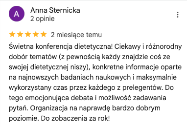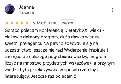- 15.11.2025 – Konferencja Dietetyk XXI Wieku (Łódź, stacjonarnie + online)