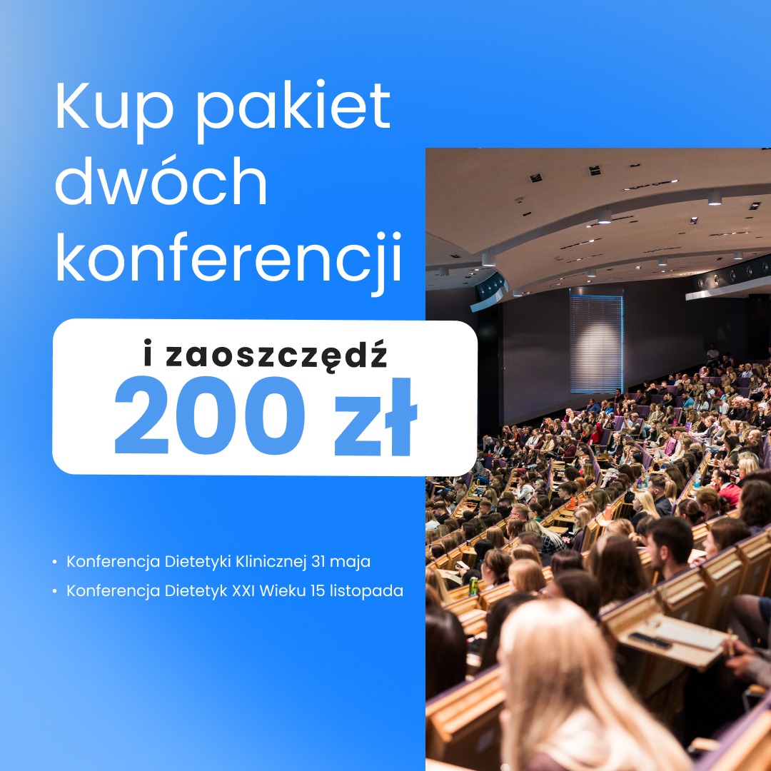 Kup pakiet Konferencji Dietetyki Klinicznej Online oraz Konferencji Dietetyk XXI Wieku i zaoszczędź 200 zł!