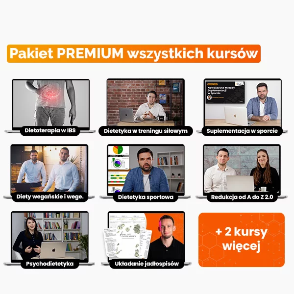 Kup wszystkie nasze kursy i zaoszczędź 2391 zł! To pakiet premium, dla naprawdę ambitnych dietetyków.