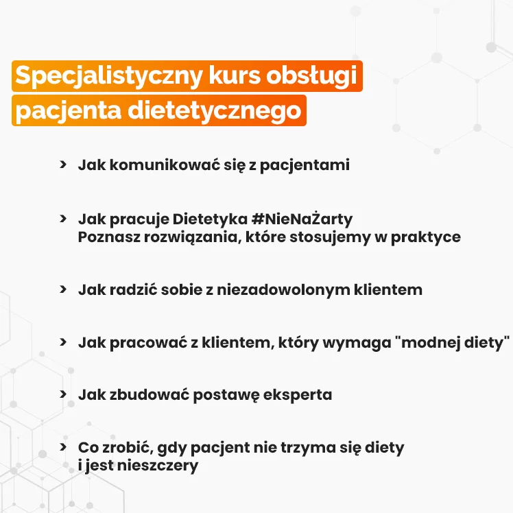 • Specjalistyczny kurs obsługi pacjenta dietetycznego