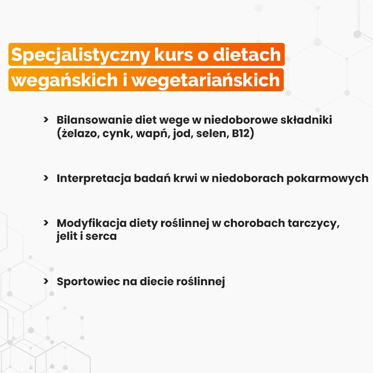 • Specjalistyczny kurs o dietach wegańskich i wegetariańskich
